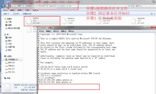 按照图片上的路径打开hosts,然后将以下内容复制粘贴到hosts的空白地方;