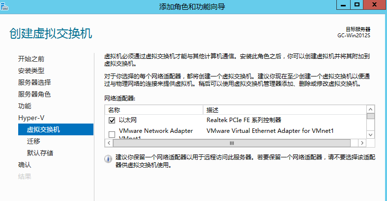 答:Hyper-V角色安装后,如果我们选择把Hyper-V的网络搭建在物理网卡上,那物理网卡将变成一个虚拟交换机。因此我们会发现物理网卡的原有配置都丢失了,这是正常现象,不用担心。Hyper-V会自动创建一个虚拟网卡来继承原物理网卡的配置,物理计算机可以正常使用网络。