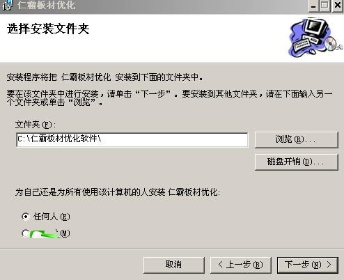 2、点击下一步设置软件安装目录,默认为“C:\仁霸板材优化软件\”,点击浏览可以更改安装位置