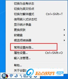 用鼠标右键点击谷歌输入法的界面,在展开菜单中选择[常用设置向导],进入谷歌拼音输入法的设置向导界面;