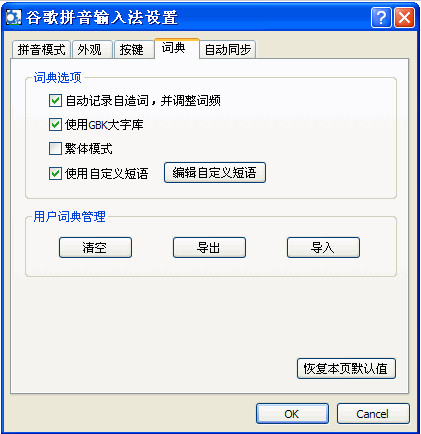 二、谷歌拼音输入法自定义短语的教程