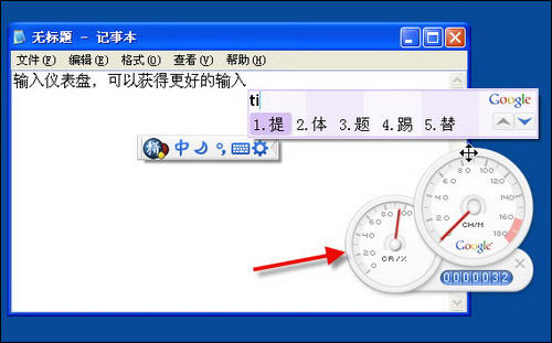 谷歌拼音输入法增加了输入仪表盘功能,实时显示输入准确率,输入速度等参数,创建更愉快的输入体验。用户可以从输入法的属性设置窗口或右键快捷菜单开启或关闭输入仪表盘。