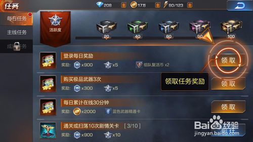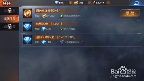 主线任务一开始有一个给很多经验的任务记得领取,之后基本上都是给的金币以及武器 、装备碎片的奖励,奖励也是比较丰厚的。