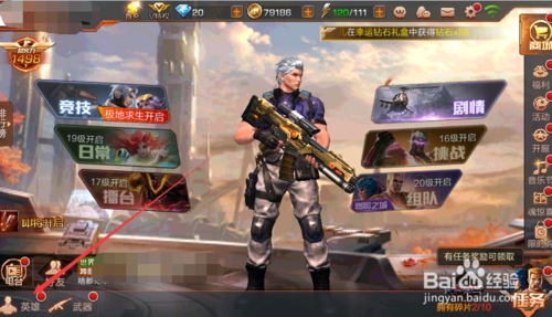 1、登录游戏然后在主界面选择【英雄】,这是提升我们游戏角色战力的方式。
