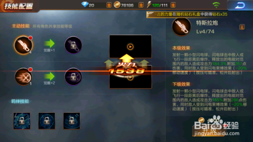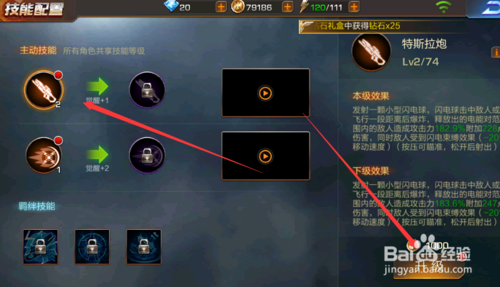 3、选择我们要升级的技能,然后在选择红色箭头处的【升级】。