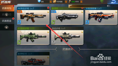 5、返回游戏主界面,我们选择【武器】,在弹出的界面选择所要升级的武器即可。