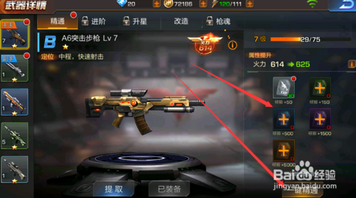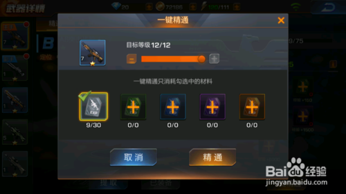 7、在新弹出的对话框里点击【精通】,武器升级就完成了。