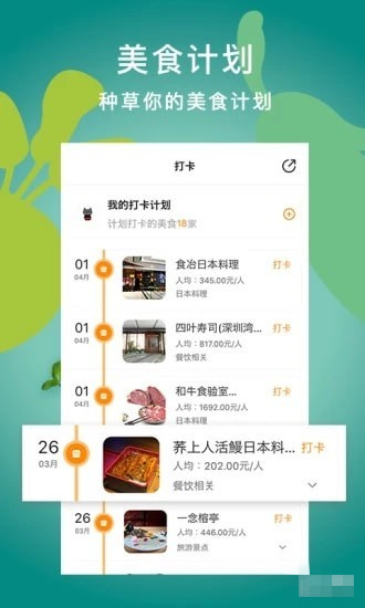 看着其他吃货的探店打卡,早馋了吧?遇到心动的美食,就赶紧加入“种草计划”吧!你所有的种草地点,都会被刷吃组建成一张智能地图。让你随时随地都能知道,自己与心动美食的距离。
