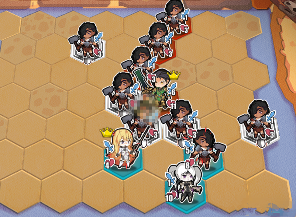 首先艾丽卡移动到夜莺守护者的右下方,然后同心之仪→石衣守护者→连携银甲→赤足萨满→鬼影守护者。攻击顺序为:艾丽卡→鬼影守护者→石衣守护者→赤足萨满。