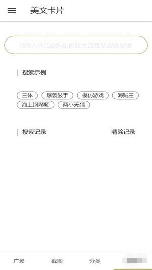 美文卡片app支持热门语句的搜索,您可以直接输入关键词内容,美文卡片APP就会快速的为您展示对应的图文。