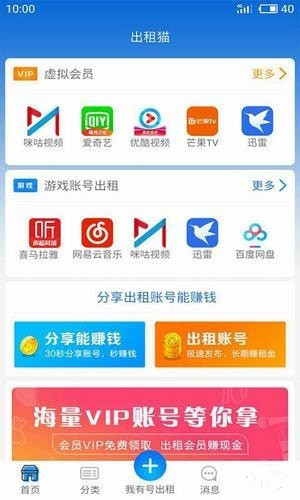 1、用户可以在这里选择自己需要租用的VIP账号进行租用。2、提交自己拥有的VIP账号,让您在线赚取永久的租金。