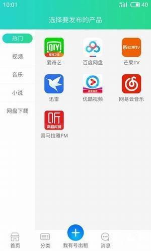 1、进入APP以后,用户就可以选择自己需要租用的账号。