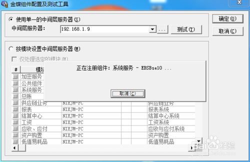 在开始中找到金蝶组件配置及测试工具进行服务器连接