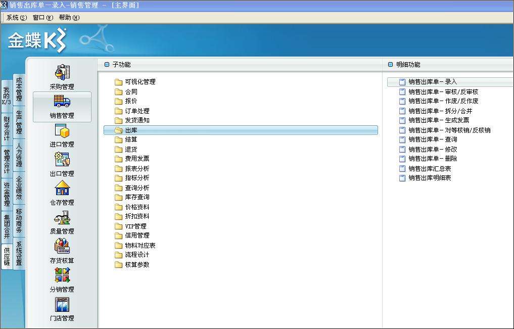 金蝶K3是一款ERP软件,ERP系统集供应链管理、财务管理、人力资源管理、客户关系管理、办公自动化、商业分析、移动商务、集成接口及行业插件等业务管理组件为一体,以成本管理为目标,计划与流程控制为主线,通过对成本目标及责任进行考核激励,推动管理者应用ERP等先进的管理模式和工具,建立企业人、财、物、产、供、销科学完整的管理体系。