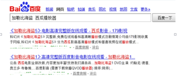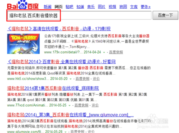 2、此时会搜索相关的视频,但不一定能够直接利用“西瓜影音播放器”进行播放。如果我们希望搜索一些可以使用“西瓜影音播放器”进行播放的视频,则可以在百度中搜3、索视频时加入“西瓜影音播放器”来实现。如图:
