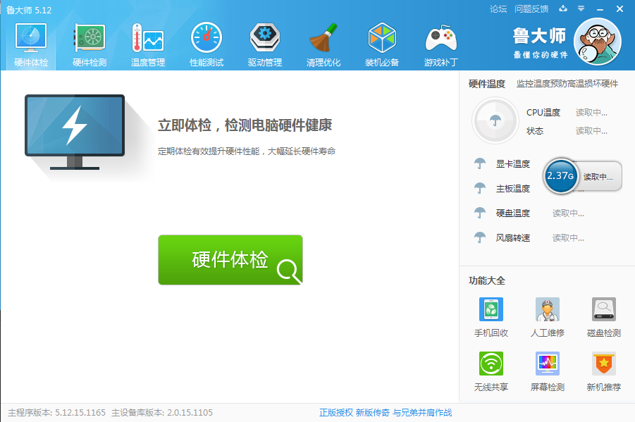 鲁大师绿色版实时检测计算机各类硬件,如CPU温度、显卡温度等温度的变化;