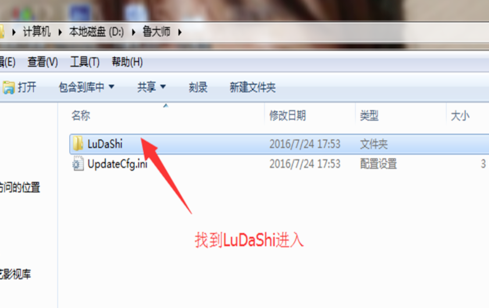 3.进入这个文件夹之后,你会看到鲁大师系统自己命名的文件夹:LuDaShi,点击这个文件进入。
