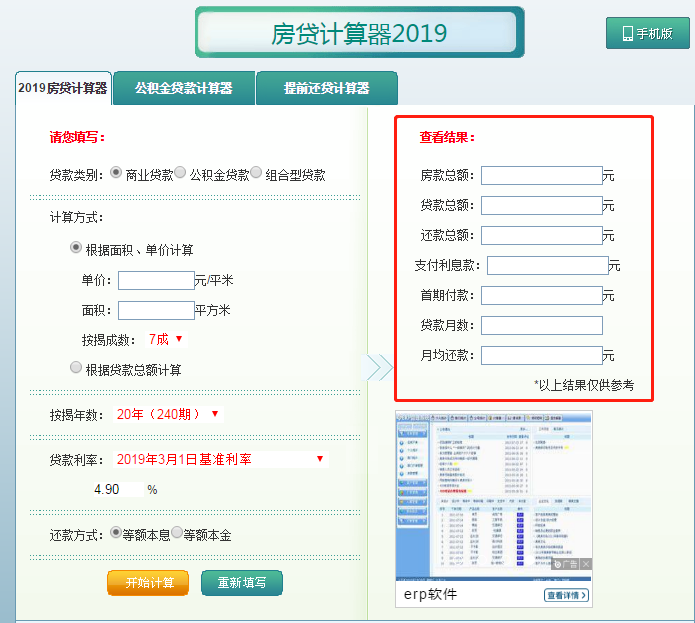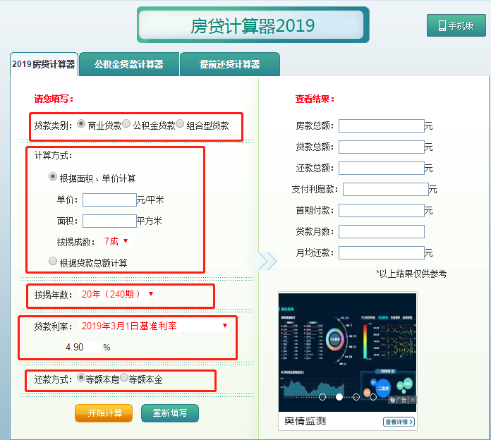 2、填写内容:贷款类别、计算方式、按揭年数、贷款利率、还款方式等等。