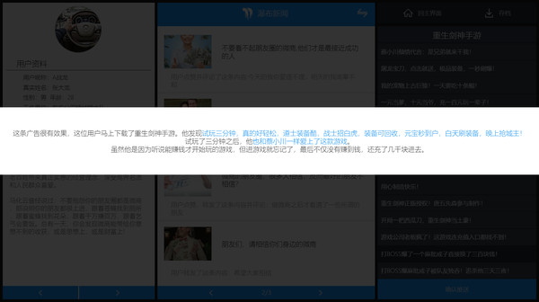 2.游戏性不高,点点点根据用户的兴趣推送热点新闻,找找段落的核心句然后做个选择题。