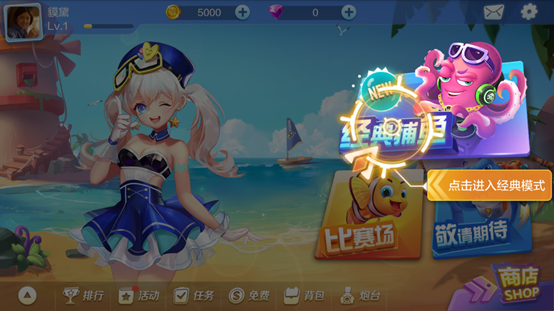 首先,点击光圈中央,进入经典捕鱼场,开始你的捕鱼生涯。