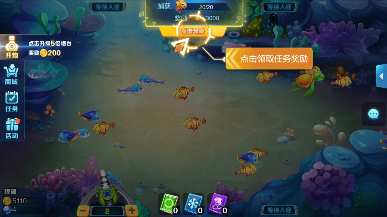 接下来,玩家还需完成一个比较具有挑战性的任务,获取1万金币。做完之后,玩家就可以开始正式的捕鱼之旅咯。