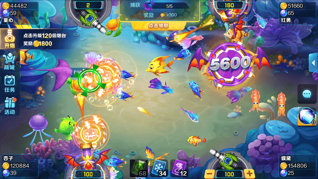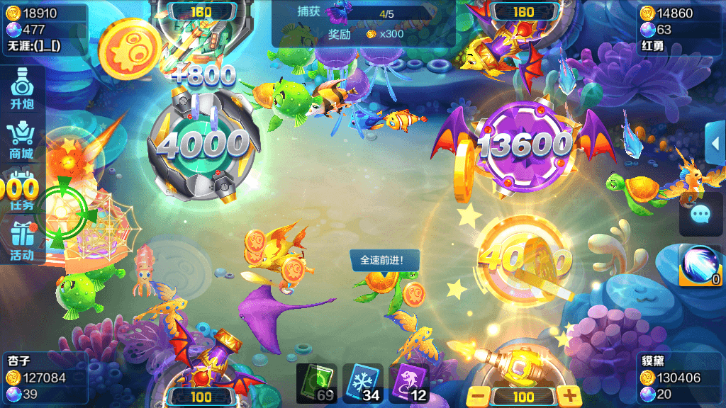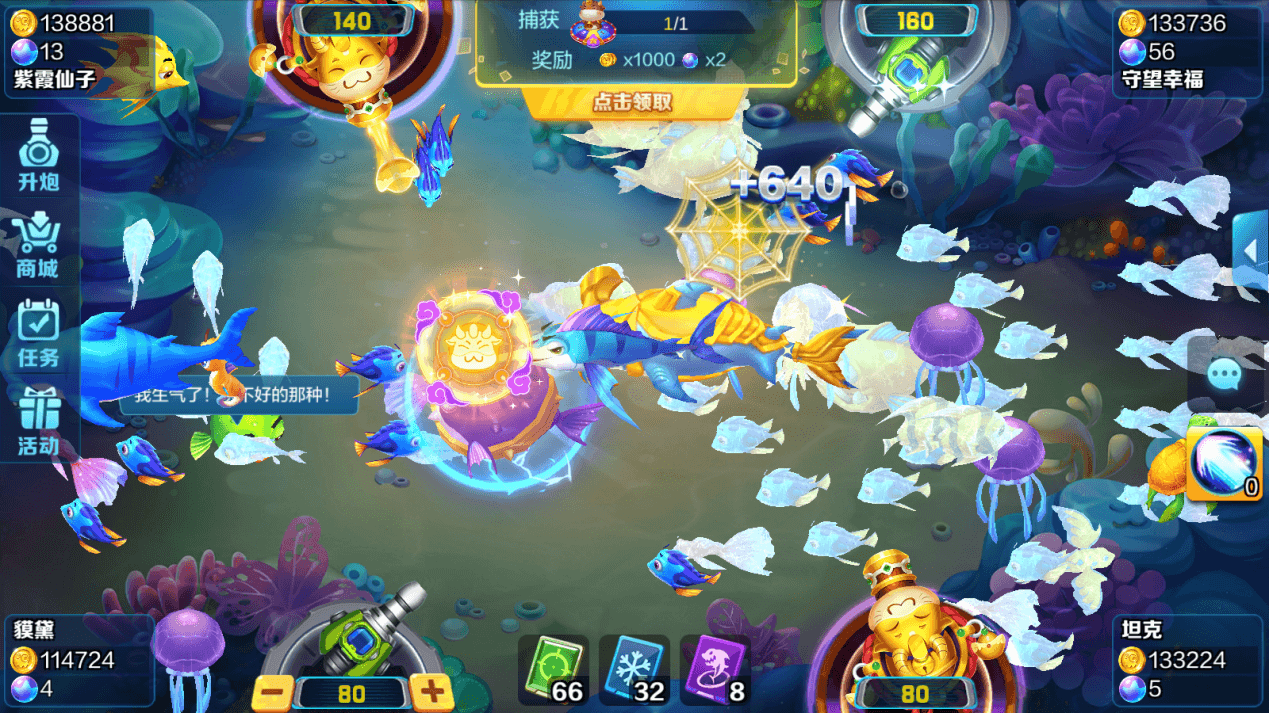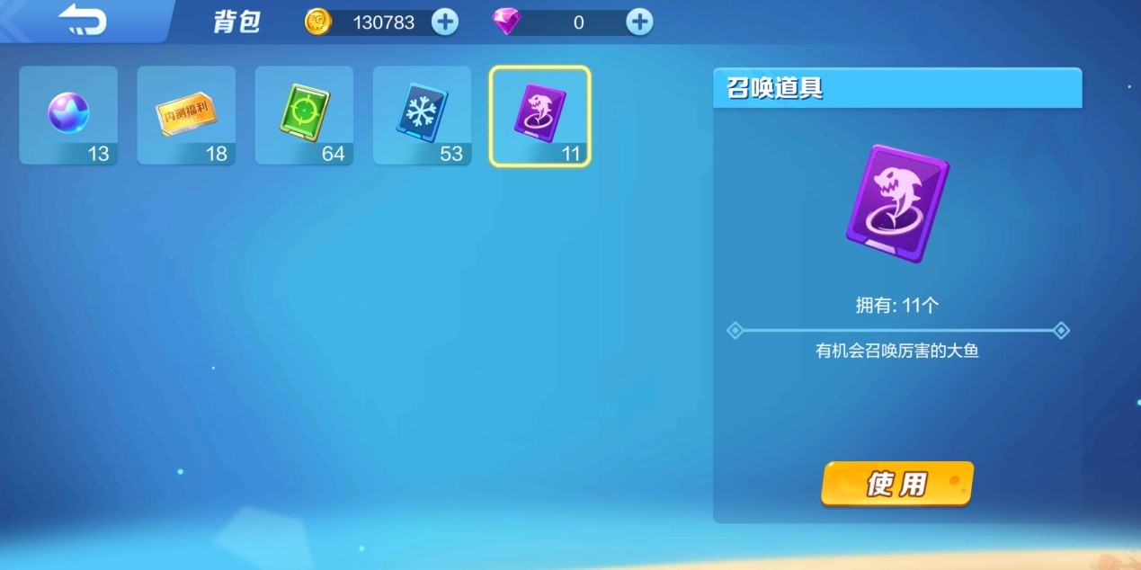 道具·召唤:使用召唤后,屏幕上会随机出现一只BOSS鱼。需要注意的是,这只鱼并非仅有玩家自己才能捕获哦。因此,大家一定要注意激光炮和道具的CD,避免被他人坐收渔翁之利。