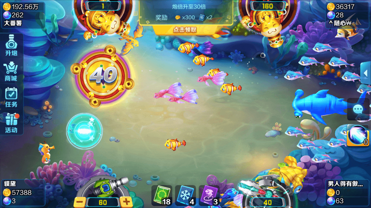 炮台的等级提高不仅会提升炮弹威力,捕获的鱼儿倍数乘以炮台倍数,就是单次捕获可得的金币倍数。
