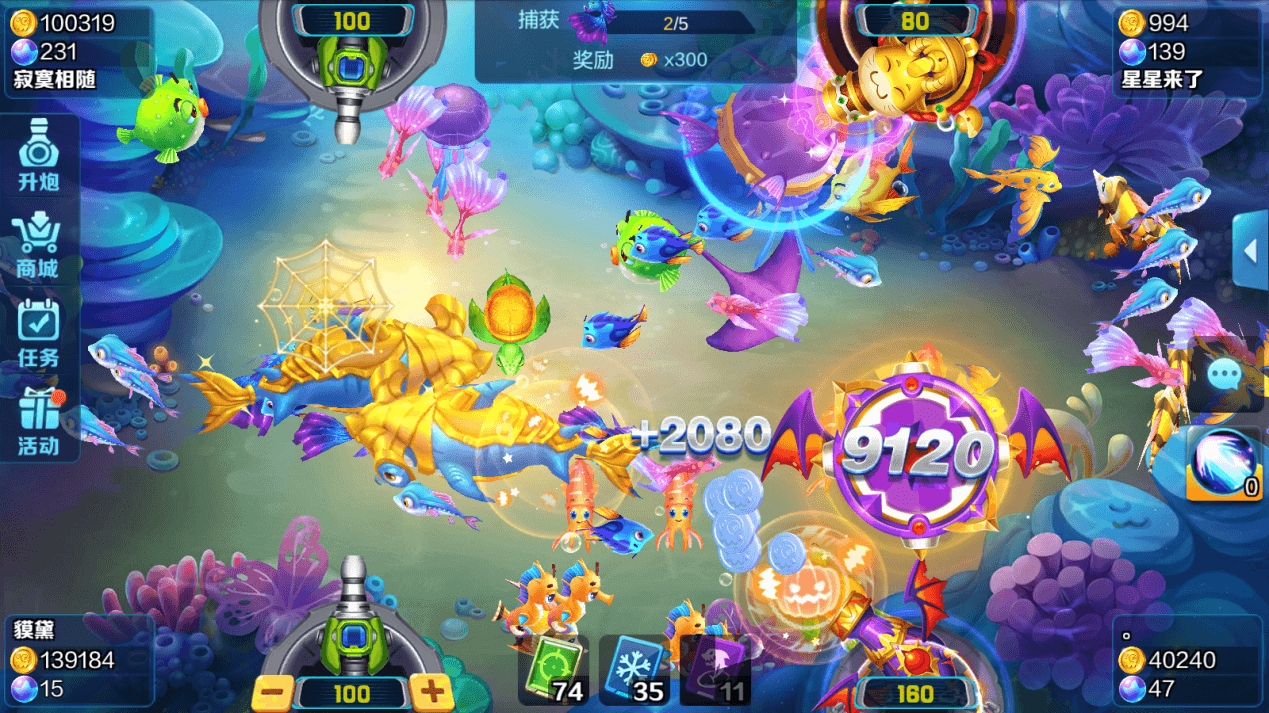经典场中所有的鱼类都有机会掉落“宝珠”道具,想要提高炮台的等级,宝珠必不可少。当宝珠积累到一定数量时,点击左侧的功能栏即可升级至对应倍数。