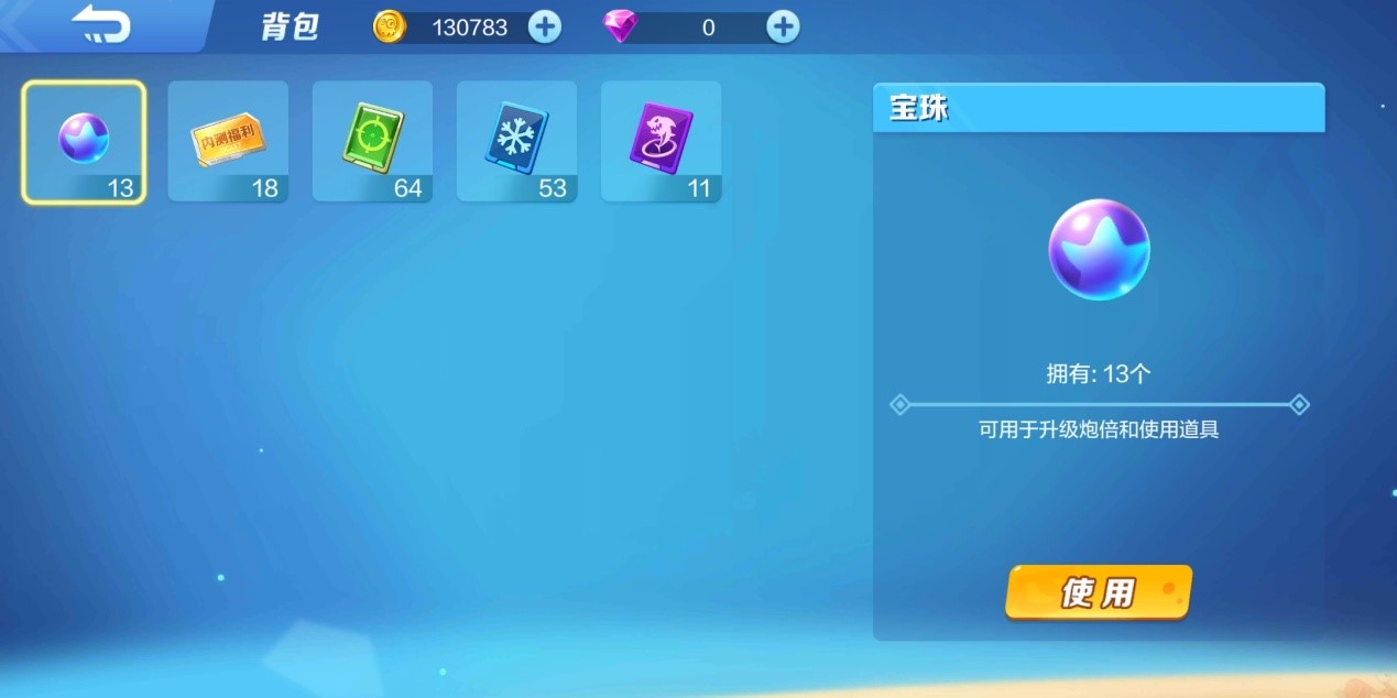 宝珠可以用于升级炮台的倍数和使用道具,炮台倍数越高捕获鱼的机率越大。
