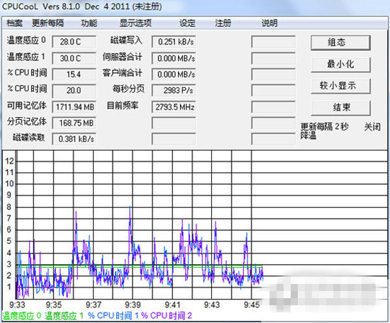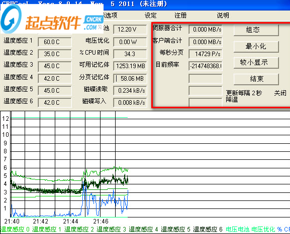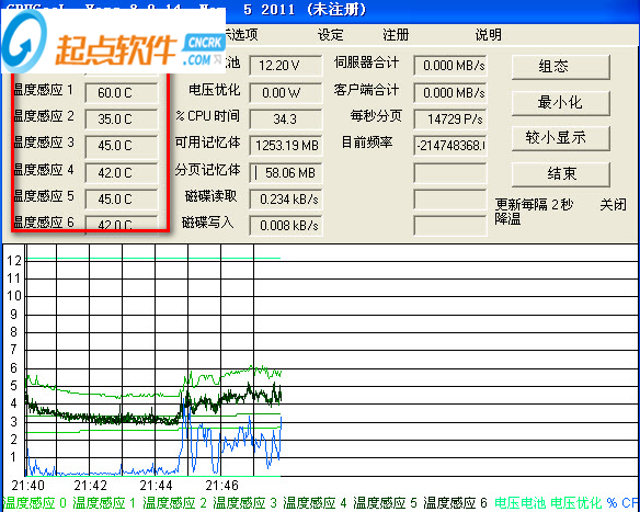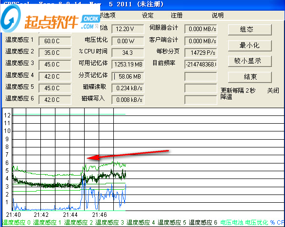 4、CPU温度变化统计图,您可以在这里清楚的了解系统温度变化