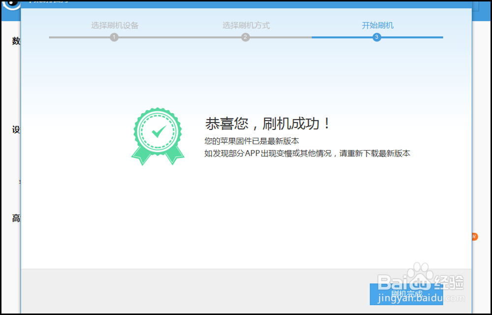 刷机成功后,你如果还想越狱的话,你可以点击菜单工具栏下的“越狱助手”进行越狱,当然,在进行越狱钱,你们得把手机密码关闭(设置——Touch ID与密码——关闭密码),也得把”查找我的 iPhone“关闭了(设置——icloud——查找我的 iPhone——关闭”)。