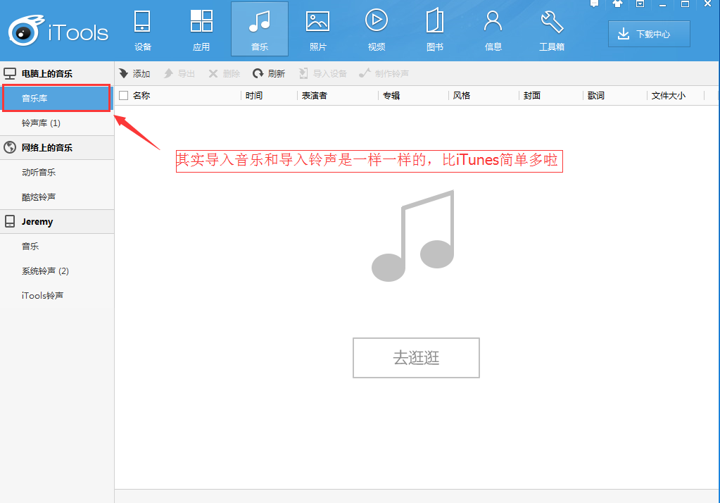 3)其实iTools导入音乐和导入铃声是一样一样的。