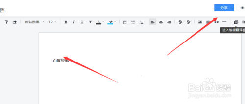 5、在里面输入文字以后,就可以,输入完毕以后,可以看到右侧的上方有一个分享按钮,可以点击分享按钮,把这个分享给好友就可以了。