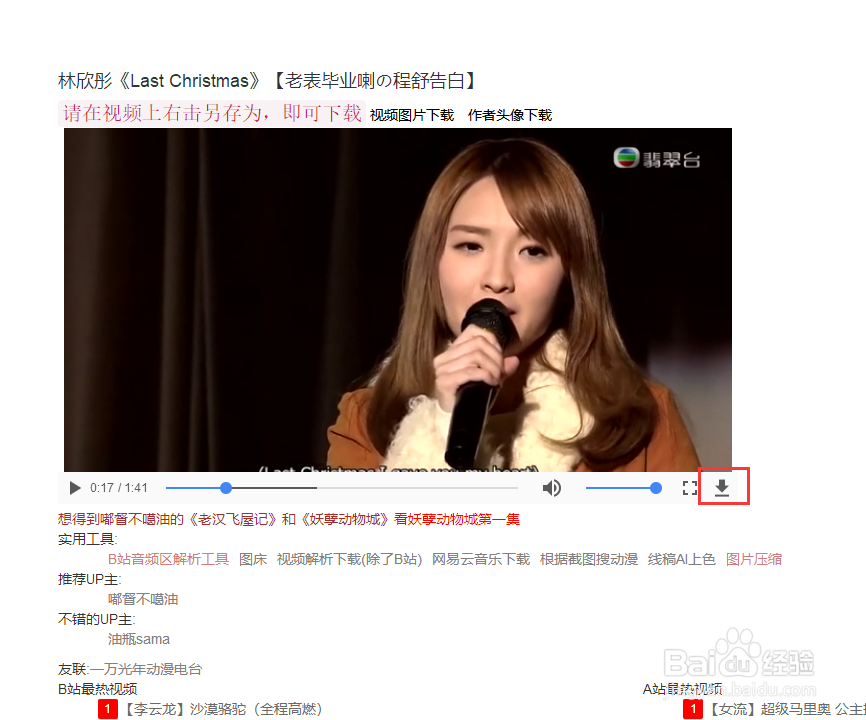 把鼠标定位到浏览器的地址栏中,在网址的 bilibili 前面加上“i”,按下回车键进行跳转,在新页面中,视频右下角的有一个下载图标