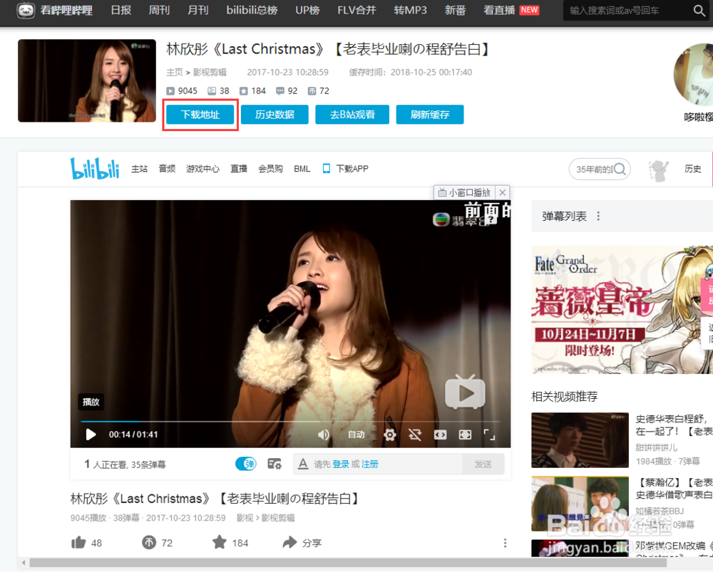 同样在需要下载的视频播放地址中,在网址的 bilibili 前面加上“kan”,,按下回车键进行跳转
