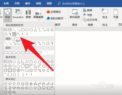 点击形状样式中的弧形样式。
