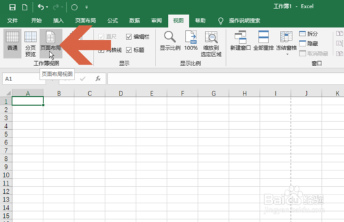 要给Excel2016工作表添加页眉,需打开页面布局视图,可点击Excel下方图示的页面布局按钮打开。