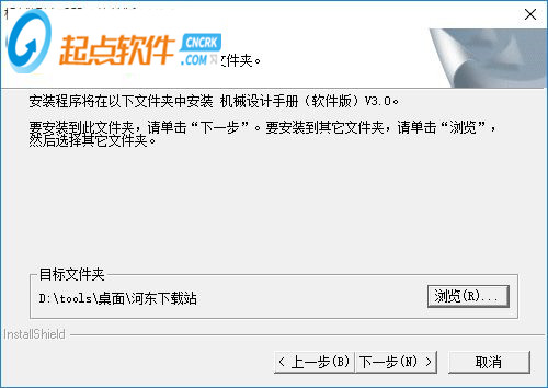 5、对目的地位置进行选择,默认位置“C:\Program Files (x86)\minfre\机械设计手册(软件版)V3.0”,建议安装在D盘,点击下一步;