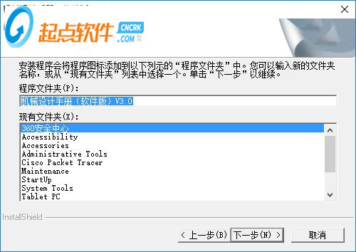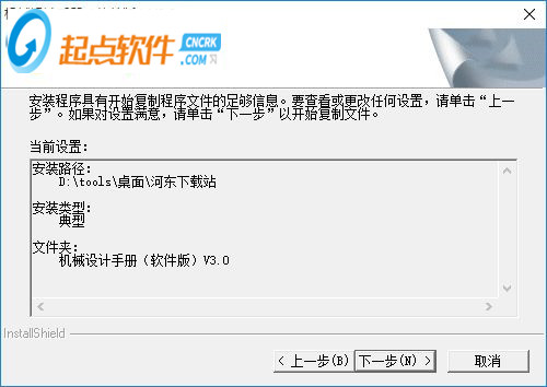 7、选择程序文件夹,默认文件夹“机械设计手册(软件版)V3.0”,点击下一步;