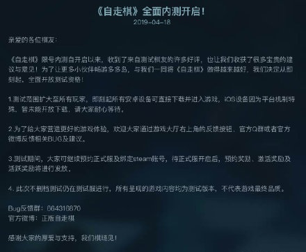 手游《自走棋》运营团队宣布开启全面内测,将测试范围扩大至所有玩家,即刻起所有安卓设备可直接下载并进入游戏,iOS设备因为平台机制特殊暂未能开放下载。测试期间,玩家可继续预约正式服及绑定steam账号。 ?