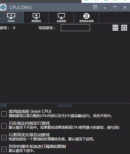 让CPU优先处理游戏。此外,可以让游戏禁用或开启超线程,让你轻松掌控具体到单个CPU核心和超线程的使用。