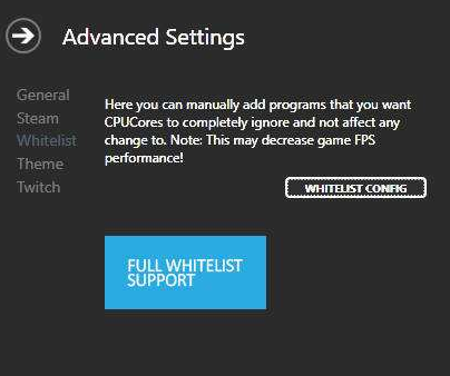 cpucores分离为处理核心,是专门用于您的游戏。此外,cpucores将允许游戏特有的超线程禁用/启用。此外,高级选项允许你在处理核心和/或超线程,你希望你的游戏使用的是特定的(或不使用)。