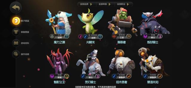 主界面主打简洁直观,很清爽。我点开所有的二级界面看了看,一圈下来基本能明白操作说明和游戏规则,棋子图鉴的卡片和装备图鉴也都很齐全,画风统一是Q萌(或许说有点蠢蠢),一改端游的主男性画风,预计女玩家接受度会直线上升。