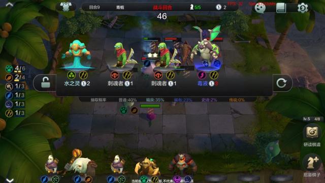 (4)在招募面板的下方会展示抽取各品质棋子的概率;