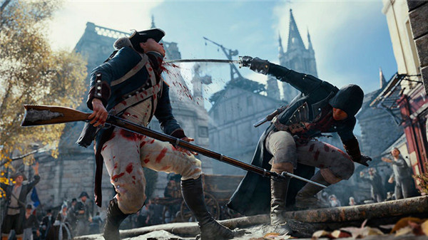 《刺客信条大革命》其实如果没有开枪的敌人偷打的话,这次的战斗其实难度没有高多少,主要是那个冷枪实在是太阴险了orz。