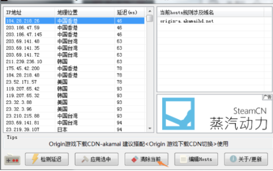 第六步:待游戏在下完毕,点击【清除当前】清除hosts即可!