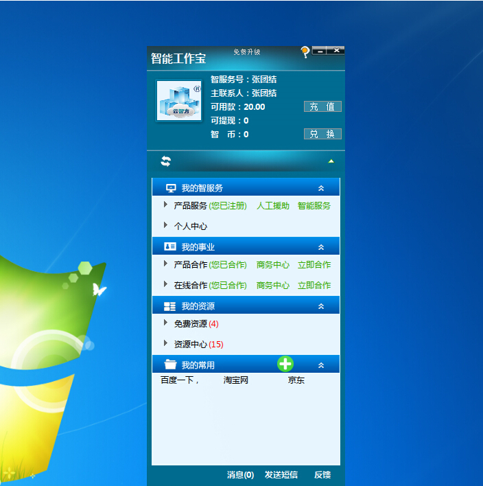 智能工作宝与智方公司的智服务系统紧密对接,使智服务用户能最友好地进入智服务平台,最方便快捷地享用智服务的各项服务项目,让使用信息化管理产品、管理软件的全过程无忧。智能工作宝集成的简洁、极致的管理工具功能,如:客户管理、提醒管理、会员管理,等等,让用户体验到管理过程的快乐、管理结果的高效、管理成本的最低。智能工作宝的各版本移动端也将陆续推出,届时将彻底解决经营者对移动业务管理的实际需求。智能工作宝做是广大老板、经理、员工工作期间的最得力帮手。已经使用智能工作宝的主要行业包括:行业批发、进销存、医疗器械、行业库存、会员管理、POS收银、蛋糕房、奶茶店、快餐店、汽车美容、加油站会员、美容院会员、会所会员、美容美发、化妆品批发零售、五金机电、建材家居、家具销售,这些行业的经营者正在享用智能工作宝带来的管理的快乐与高效。