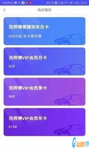 2、洗师傅还为用户提供不同的服务,不同服务卡,年卡,季卡,月卡,次卡,为你提供便捷的上门洗车服务
