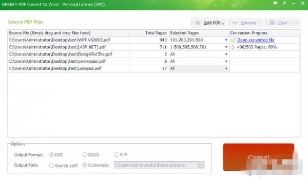 ONEKEY PDF转换为Word是一个功能强大且易于使用的软件,可以智能地将pdf转换为易于编辑的word doc文档。使用此软件,只需将pdf文件拖放到工作区,然后即可开始转换。它不需要adobe Acrobat,AcrobatReader或任何其他第三方pdf阅读器或制造商。