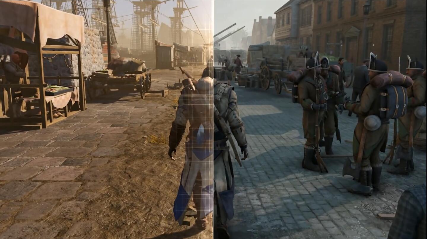 本世代主机的硬件性能让环境细节和NPC数量都得以提升,一切明显的效果都有显著更新,包括角色模型等,都更具表现力。